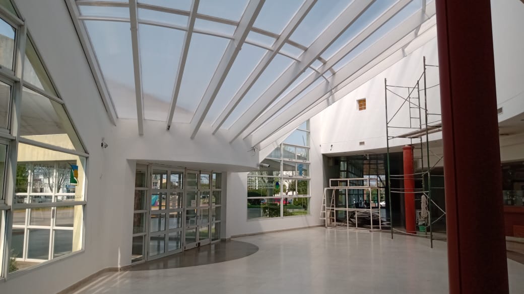 La Municipalidad de Nueve de Julio, a través de la Secretaría de Vivienda y Urbanismo, luego de culminar las obras de recambio completo del techo de policarbonato del hall central de la Terminal de Ómnibus, que abarcaron el mantenimiento general de la totalidad de la estructura metálica del mismo, se encuentra avanzando en los trabajos de pintura del interior del edificio, que paulatinamente va luciendo totalmente renovado, a la vez que se planifican mejoras en el sector exterior, tanto sobre la calle interna como en el frente del edificio.