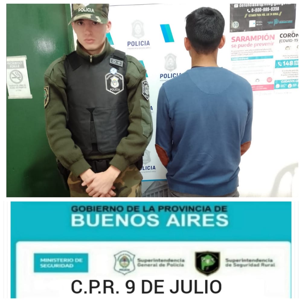 Comando de Prevención Rural 9 de Julio informa que en ámbito jurisdiccional zona rural “La Niña”, cuartel V, procedió a la aprehensión de una persona de sexo masculino mayor de edad, oriundo de esta localidad, el cual poseía en su poder 13gr de una sustancia tipo hierba, color verde, la cual ante realizar prueba toxicológica misma arroja resultado positivo para Marihuana, por lo que se le da intervención a la U.F.I N° 06, Dpto. Judicial de Mercedes; quien dispuso se labren actuaciones por “Tenencia de estupefacientes para uso personal” y posterior libertad.