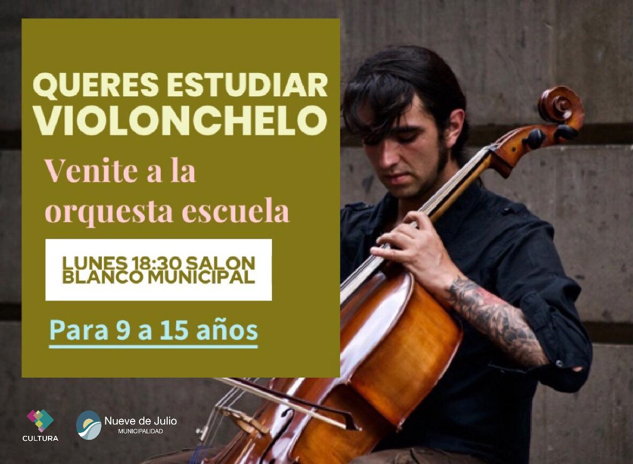La Orquesta Escuela convoca a los niños de 9 a 15 años, interesados a aprender violonchelo a acercarse a las clases de la misma, que se dictan los lunes, a las 18,30 hs., en el Salón Blanco Municipal, a través de la Dirección de Cultura de la Municipalidad de Nueve de Julio.