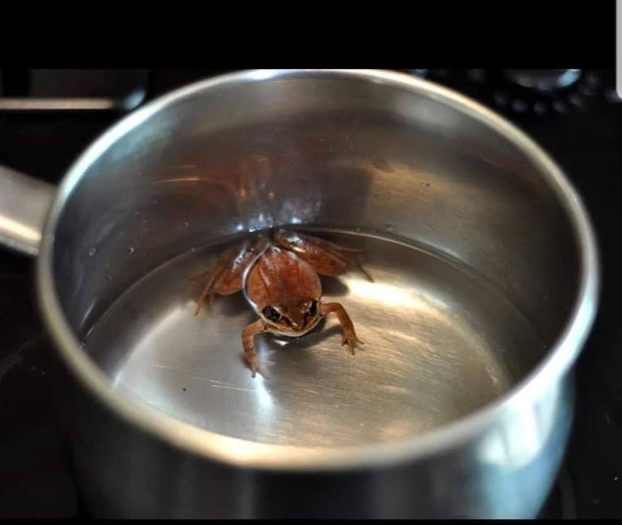 Si agarras un sapo, lo pones en una olla con agua y llevas al fuego, observarás algo interesante: el sapo se adapta a la temperatura del agua, permanece dentro y continúa adaptándose al aumento de temperatura. Pero cuando el agua llega al punto de ebullición, al sapo que le gustaría saltar de la olla, no puede. Porque está demasiado débil y cansado debido a los esfuerzos que ha realizado para adaptarse a la temperatura.