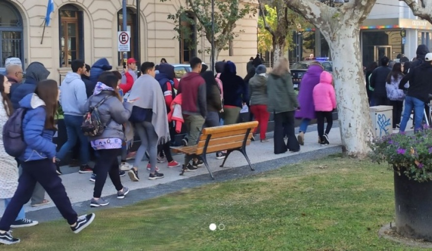 La cita tuvo lugar en la Plaza Merced y desde allí se movilizaron con pancartas, frazadas y cantos por la Peatonal hasta llegar al Consejo Escolar, donde fueron recibidos por las autoridades.