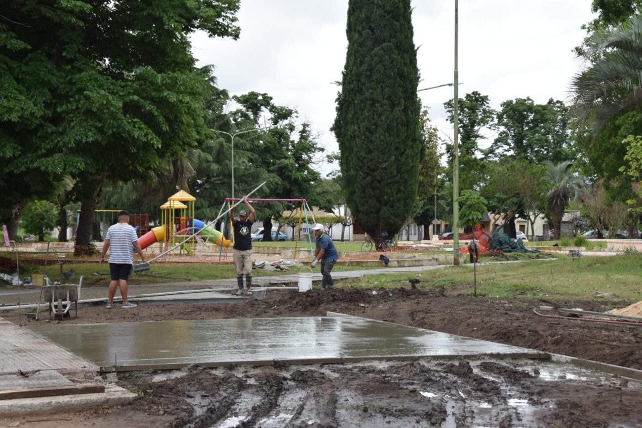 En el marco del programa de remodelación de los paseos públicos que viene llevando adelante la Municipalidad de Nueve de Julio, continúan a buen ritmo las obras de Plaza España, procediéndose en estos momentos a la realización de las ochavas de ingreso, luego de haberse concluido con la colocación de baldosas.