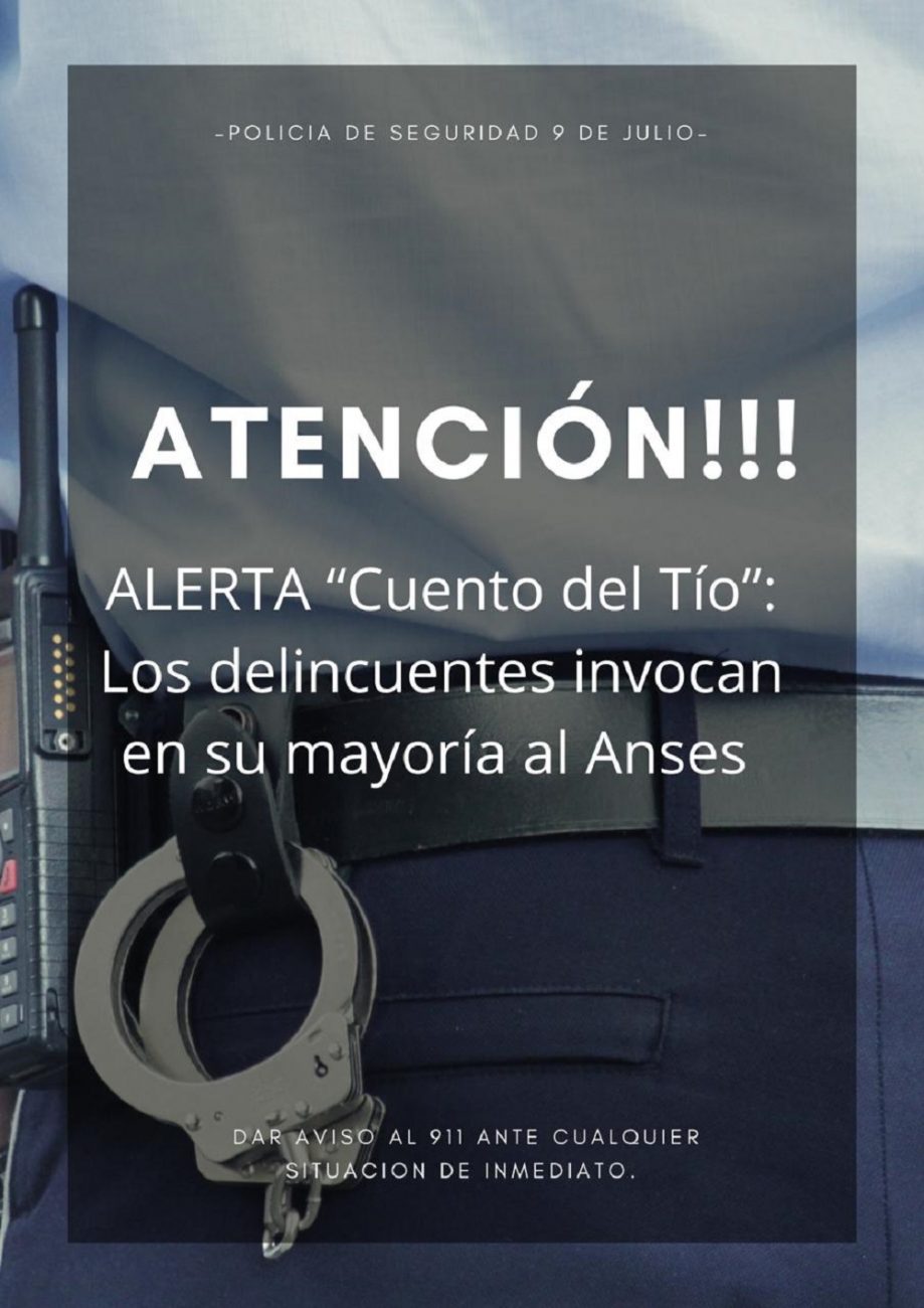 Desde la asociación Asociación civil seguridad ciudadana en el 9, informan a través del grupo de Facebook “inseguridad en 9 de Julio” que dos integrantes informaron que alrededor de las tres de la mañana y con diferentes argumentos (lo que conocemos como secuestro virtual), recibieron un llamado telefónico con el fin de engañarlos.