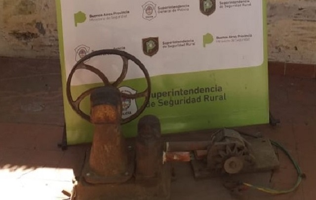INFORME DE PRENSA : El Comando de Prevención Rural Nueve de Julio, informa que en el día de ayer radico denuncia Penal en el asiento de esta dependencia Policial el ciudadano Marini Juan Carlos, quien manifestó que al llegar al campo sito en zona rural 12 de Octubre constato que autores ignorados le habían sustraído un bombeador marca Villa Modelo AA y un alternador modificado y utilizado para la carga de baterías mediante la utilización de motor a explosión. Constituido personal policial y a raíz de averiguaciones practicadas, se logra establecer que los elementos mencionados se encontraban en un comercio dedicado a la compra- venta situado en este medio, los cuales fueron incautados y por orden de la fiscalía actuante restituidos al Sr. Marini. Se instruyen actuaciones Judiciales Caratuladas “HURTO” con intervención de la U.F.I Nro. 2 a cargo del Dr. Villalba Sebastián del Departamento Judicial de la ciudad de Mercedes. Fdo. Comisario Claudio Adrian Koffler 2° Jefe de C.P.R 9 de Julio.