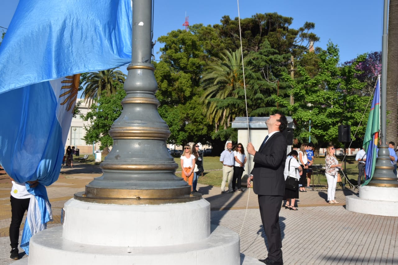 En Plaza Belgrano se realizó el izamiento de banderas, y posteriormente se colocó una ofrenda floral en el busto que honra la memoria del fundador, Julio de Vedia, que se encuentra en el Palacio Municipal.