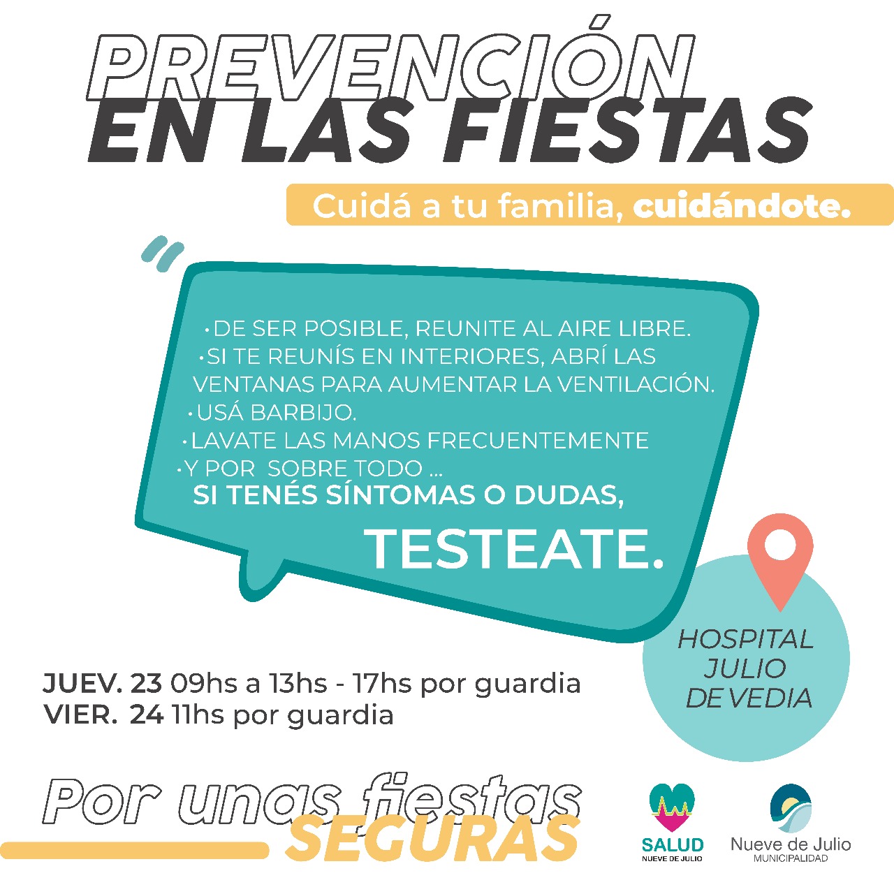 La Secretaría de Salud de la Municipalidad de Nueve de Julio insta a la comunidad a compartir la celebración de las Fiestas, cumpliendo con distintas medidas de cuidado y prevención.