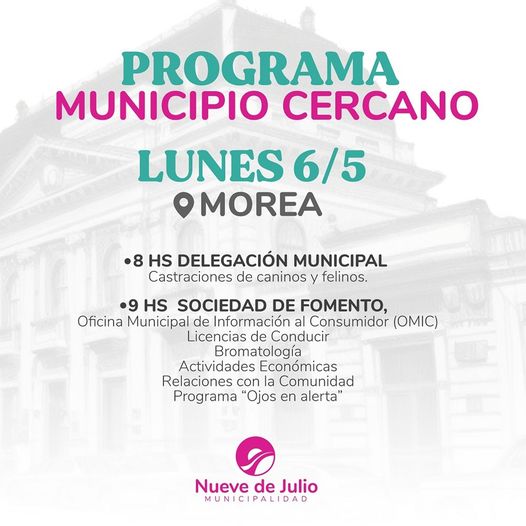 En tanto, desde las 9 hs., en la sede de la Sociedad de Fomento, atenderán la Oficina Municipal de Información al Consumidor (OMIC), Licencias de Conducir, Bromatología, Actividades Económicas, Relaciones con la Comunidad y se sumará a vecinos que deseen integrarse al programa “Ojos en alerta”.