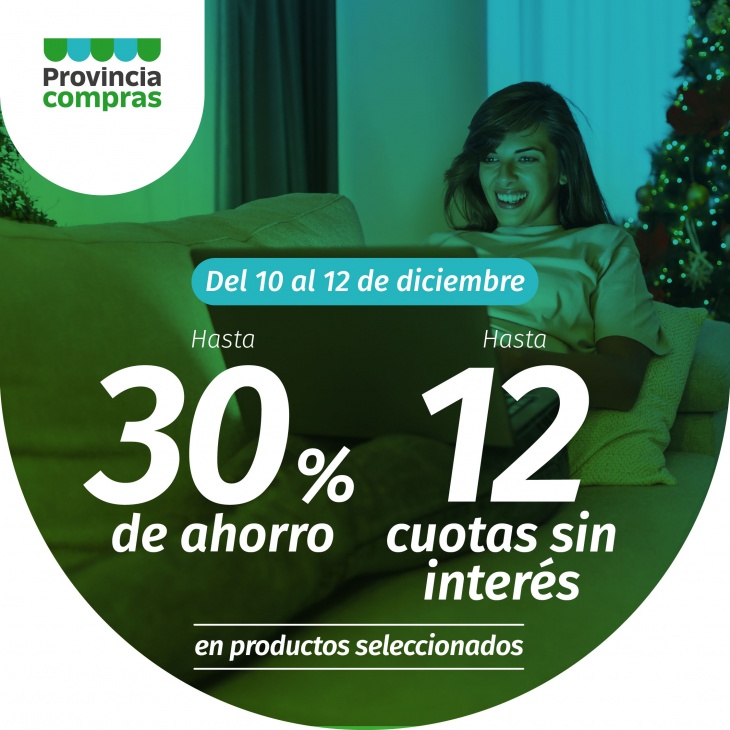 Banco Provincia comenzó con las promociones especiales para financiar los regalitos de Navidad. Así, entre el martes 10 de diciembre y el jueves 12 se podrán adquirir productos seleccionados en el portal Provincia Compras, hasta en 12 cuotas sin interés y con un 30% de descuento.