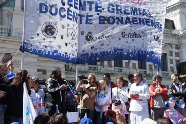 Los gremios que componen el FUDB se reunieron este mediodía en la sede de Suteba ubicada en la ciudad de La Plata y decidieron avanzar con una jornada de lucha de 48 horas, que incluirá un paro provincial para el viernes de esta semana y una jornada de lucha para el martes 19. Además, los principales sindicatos bonaerenses (Suteba, FEB y Udocba) confirmaron que serán parte de la medida de fuerza de este jueves convocada a nivel nacional.