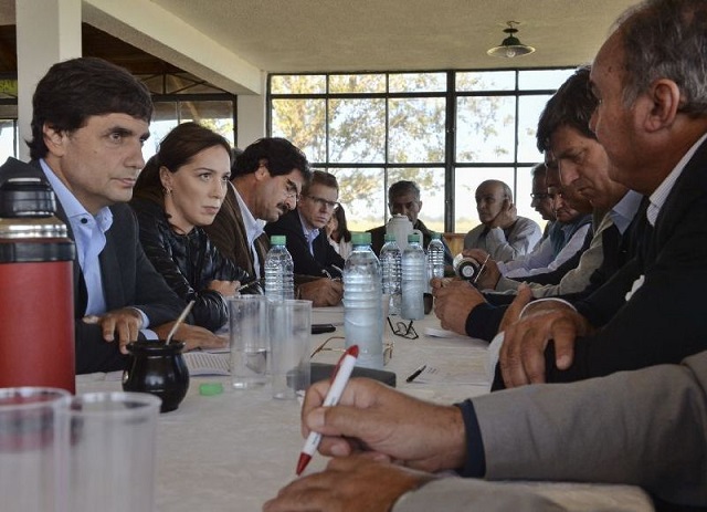 Antes del anuncio, Vidal y sus funcionarios se reunieron con los miembros de la Mesa Agropecuaria provincial Matías de Velazco y Carlos Sere, presidente y vicepresidente de Confederación de Asociaciones Rurales de Buenos Aires y La Pampa; Aníbal Chiramberroy Claudio Angeleri, de Federación Agraria Argentina; Walter Malfatto y Santos Zuberbuhler, de Sociedad Rural Argentina y Daniel Berdini de Coninagro.