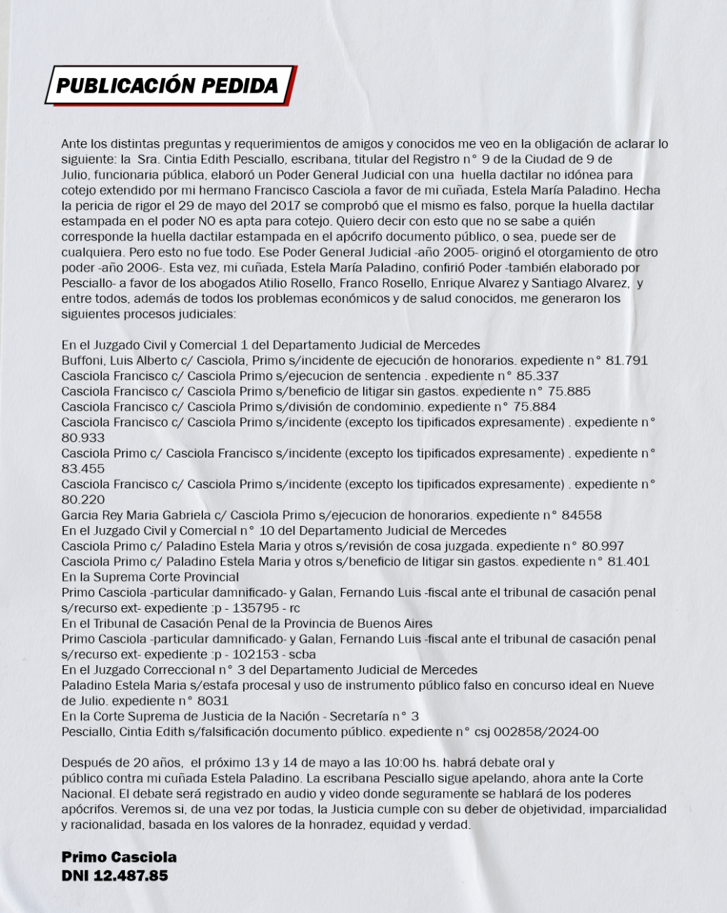 PUBLICACIÓN PEDIDA