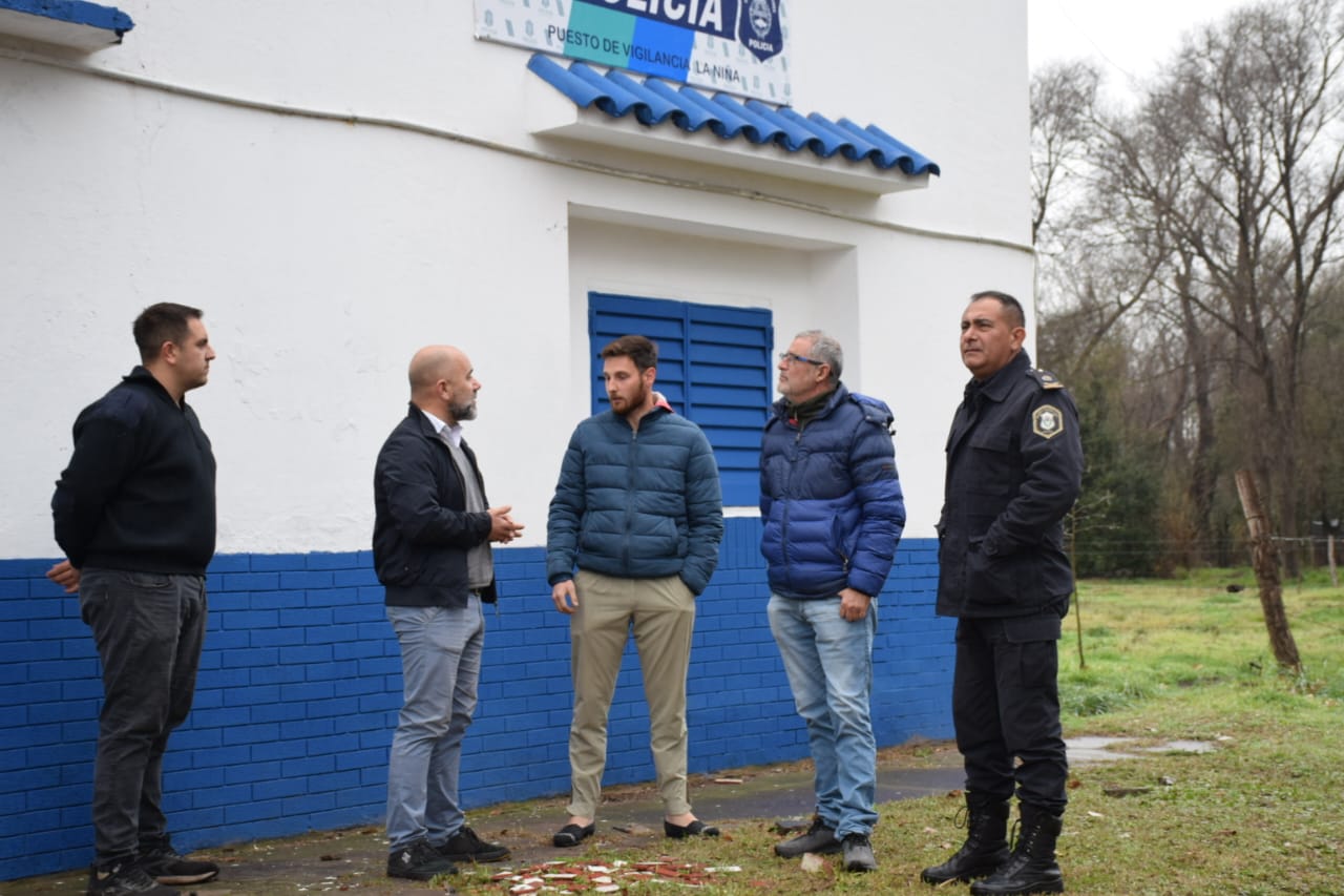El secretario de Gobierno de la Municipalidad de Nueve de Julio, Víctor Altare, acompañado del subsecretario de Seguridad, Fabián Beltrán, y el titular de la Policía Comunal, Crio. Gustavo Quemehuencho, visitó la localidad de La Niña, donde junto al Delegado Municipal, Mirko Pardo, verificaron la ejecución de las obras realizadas en el puesto de vigilancia policial de esta comunidad.