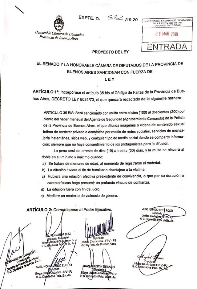 El diputado de Unidad Ciudadana José Ignacio Rossi presentó un proyecto de ley para incluir el artículo 35 bis en el Código de Faltas y penar la difusión de videos sexuales, muchas veces utilizado para la pornovenganza.