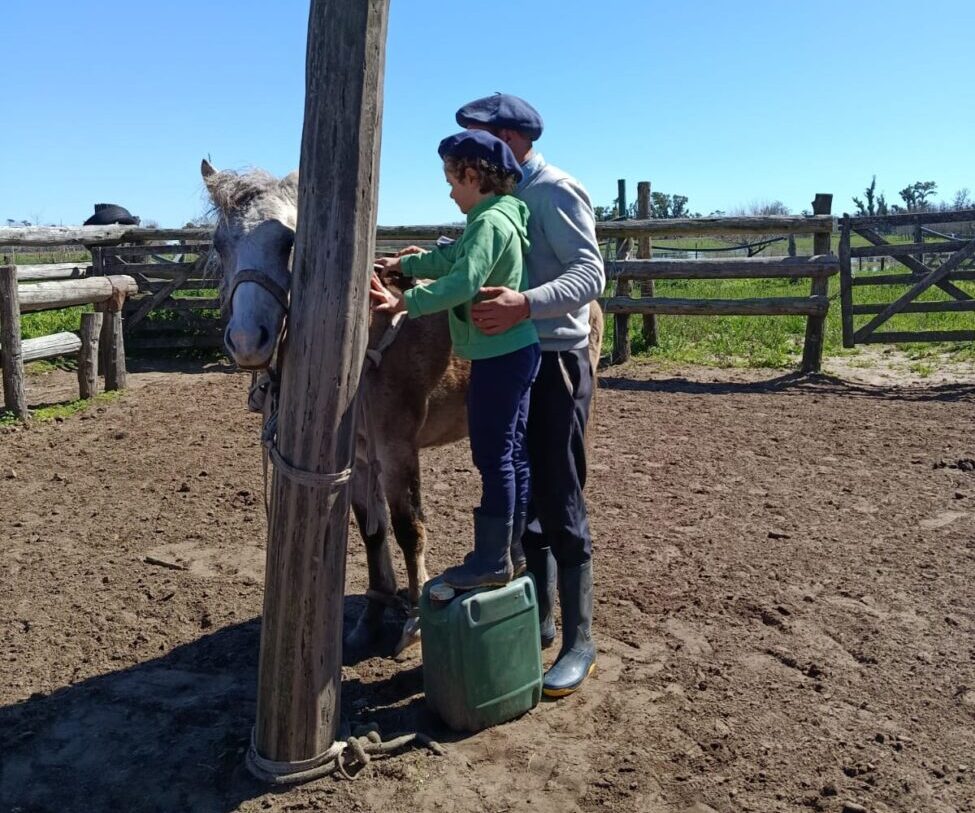«No somos domadores, pero tratamos de aprender dia a dia y hacemos lo mejor posible«, explica Alejo Sagasti, y explica que «lo primero es enseñarle a pararlo, a embozalarlo, el tusó al petiso por primera vez«, y asi «le sacan las cosquillas«. Todo esto va generando una conexión entre los dos.