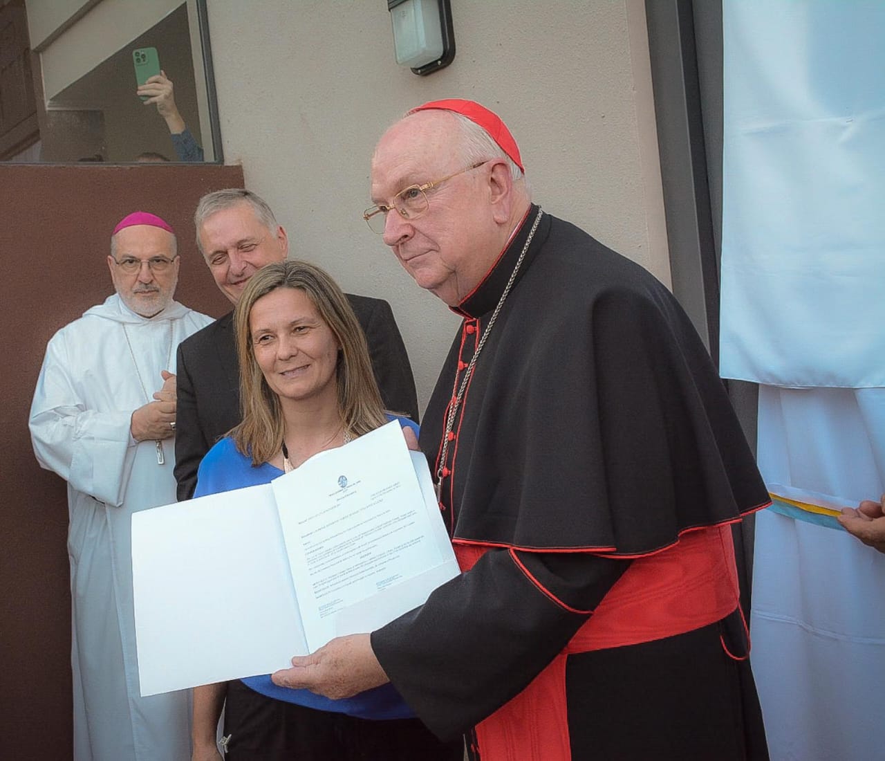 Allí, la Intendente María José Gentile hizo entrega de un presente y del decreto de declaración de “Visitante Ilustre” al Eminentísimo Cardenal Fernando Vergel Álzaga, quien no sólo se desempeñó durante veinte años como Secretario del Cardenal Pironio sino que además fue nombrado como delegado papal para realizar el rito de beatificación del purpurado nuevejuliense.