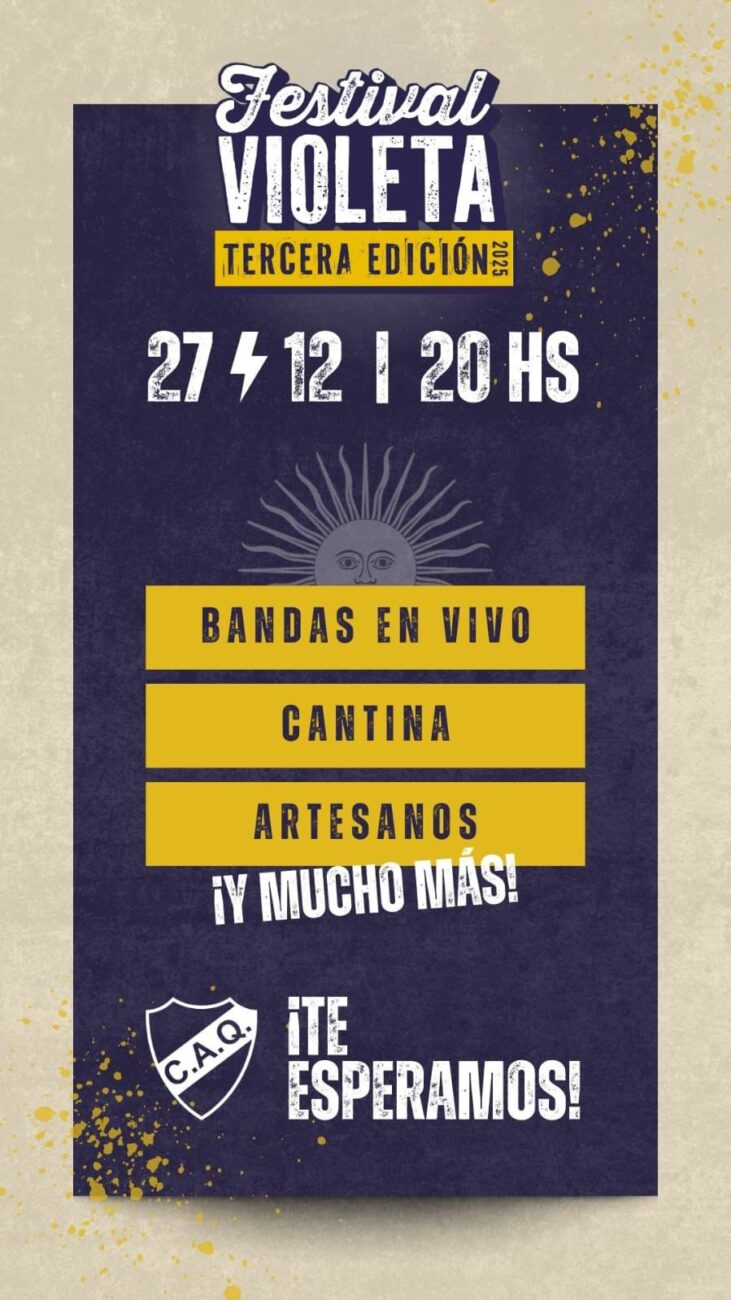Este sábado llega la tercera edición del Festival Violeta, evento que tiene como objetivo el juntar fondos para sostener la temporada de pileta del Club Atlético Quiroga. Una iniciativa que ya tuvo muy buena repercusión en las ediciones anteriores y cumplió con los objetivos planteados. Los gastos son muchos y también la pileta del club es el punto de encuentro donde muchísimos chicos de la localidad disfrutan del verano.