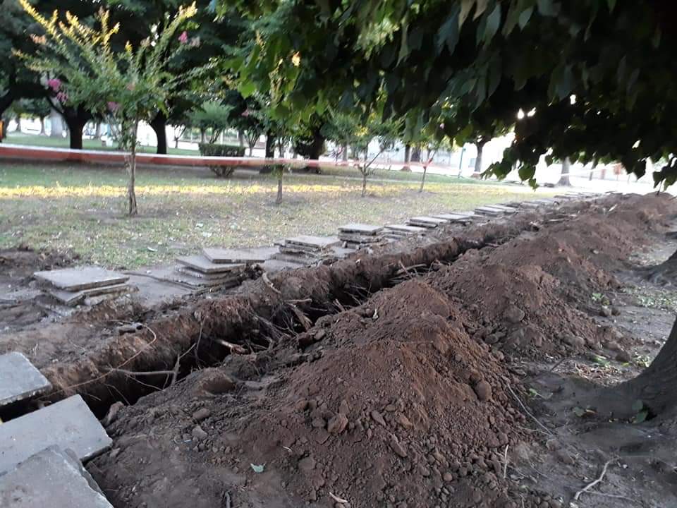 La Municipalidad de Nueve de Julio, a través de la Secretaría de Obras y Servicios Públicos y  en forma conjunta con la Cooperativa Eléctrica de Dudignac, comenzó con las tareas de recambio de veredas en la Plaza General San Martín, retirando las viejas baldosas que serán reemplazadas por una nueva superficie de hormigón, de excelente circulación.