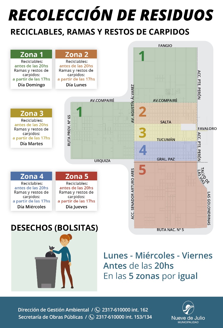 La Municipalidad de Nueve de Julio recuerda el siguiente cronograma para la recolección de residuos.