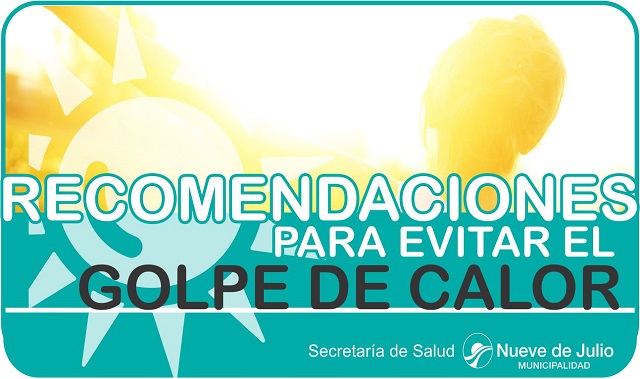 Ante las altas temperaturas pronosticadas para la presente semana, la Secretaria de Salud dela Municipalidad de Nueve de Julio recomienda tomar los cuidados necesarios para prevenir el golpe de calor. Hay que tener en cuenta que puede afectar a personas de cualquier edad, pero los grupos de mayor riesgo son los niños -que no manifiestan sus síntomas con facilidad- y los mayores de 65 años.