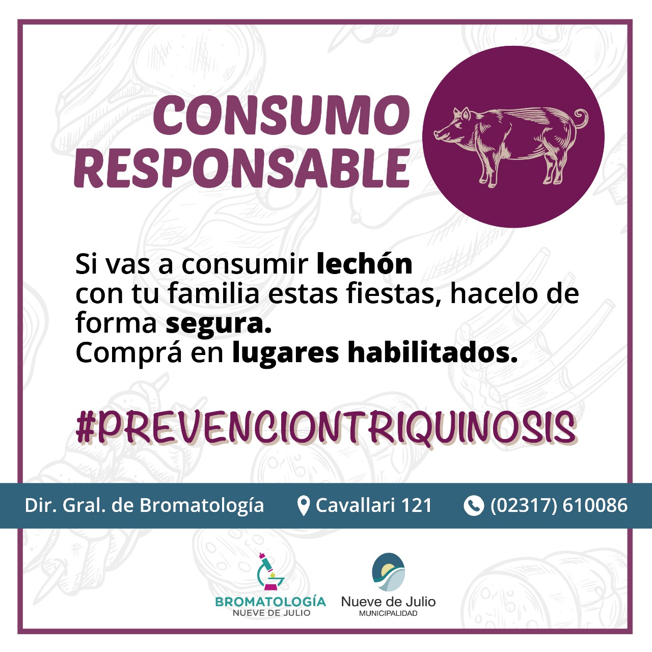 La Dirección de Bromatología de la Municipalidad de Nueve de Julio recuerda a la comunidad que si se elaboran chacinados utilizando carne cruda de cerdo para consumo propio, se debe efectuar la prueba de digestión artificial , que posibilita el diagnóstico temprano de la triquinosis.