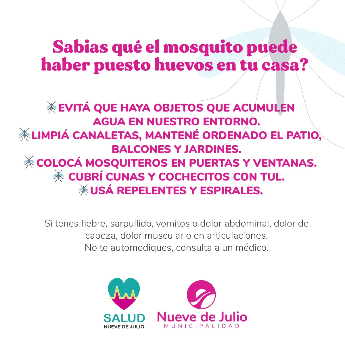 La Secretaría de Salud de la Municipalidad de Nueve de Julio recuerda las recomendaciones que deben tenerse en cuenta respecto del dengue.