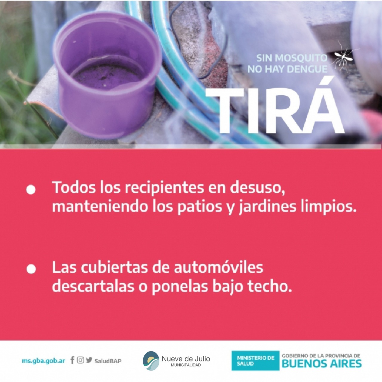 Secretaría de Salud de la Municipalidad de Nueve de Julio recuerda las recomendaciones que deben tenerse en cuenta respecto del dengue.