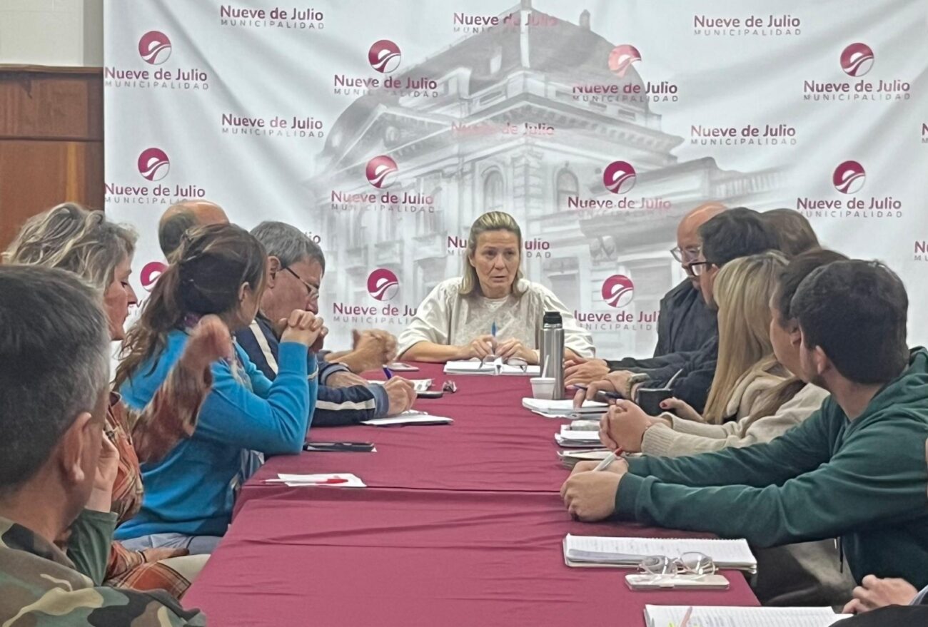 Tuvo lugar el martes por la mañana, en el Salón de las Américas del Palacio Municipal, presidida por la Intendente Municipal, María José Gentile, y se analizó especialmente la coordinación de acciones tendientes a la asistencia a localidades y escuelas rurales, ante la emergencia hídrica que sufre el distrito. Además estuvieron la presidente del Consejo Escolar, Valeria Maidana, la Inspectora Jefe Distrital, Gabriela Tiani, el Jefe del Cuartel de Bomberos Voluntarios de 9 de Julio, Sergio Fernández, personal de la Estación de Policía Comunal, del CPR 9 de Julio y funcionarios del Gabinete Municipal.