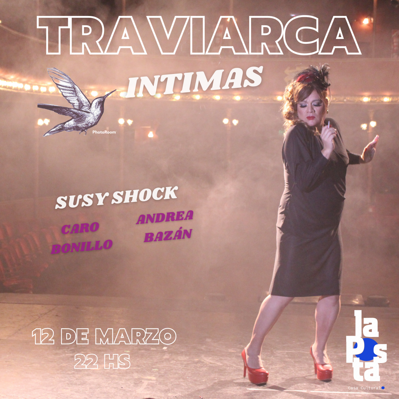 El sábado 12 de marzo con doble función a las 20 y 22hs, llega a la Posta casa cultural (Av. Vedia 233) Susy Shock a presentar su último disco «Traviarca» en formato íntimo acompañada de Caro Bonillo y Andrea Bazán.