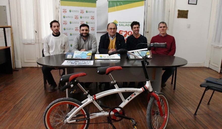 El intendente de Saladillo Ing. José Luis Salomón junto con el Subsecretario de Desarrollo Local Tomás Chaime, el subsecretario de Obra Pública y Planeamiento y vecinos del distrito, presentaron este viernes el programa “Mejor en Bici”, una propuesta pensada y elaborada con la finalidad de poner como tema de agenda pública, distintas acciones que “fomenten y faciliten el uso del transporte sostenible” en esa ciudad del centro bonaerense.