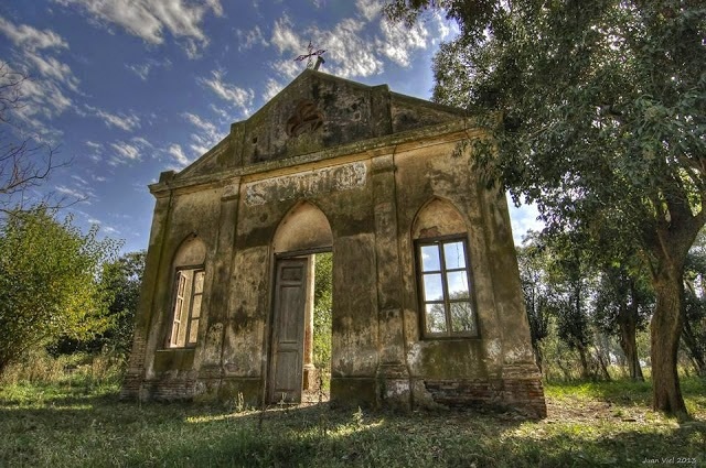 A partir del lote destinado a la plaza hizo construir a su alrededor la capilla, cuya piedra fundamental se colocó el 12 de septiembre de 1893, y se inauguró el 24 de diciembre con la presencia de Monseñor Mariano A. Espinosa. La dedicó a su santo homónimo, encargándose él mismo de conseguir las imágenes de los santos, objetos de culto y cuadros religiosos. Sin embargo en la puerta de madera de la entrada a la iglesia dice fundada en 1892.