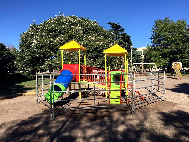 A través de la Subsecretaría de Espacios Verdes de la Municipalidad de Nueve de Julio, continúa desarrollándose el programa de modernización de plazas en la ciudad y las localidades del interior del partido, marco en el cual se efectúan tareas de recambio de juegos infantiles en Plaza Italia, donde se coloca un mangrullo con dos torres, con estructura de caño y toboganes plásticos.