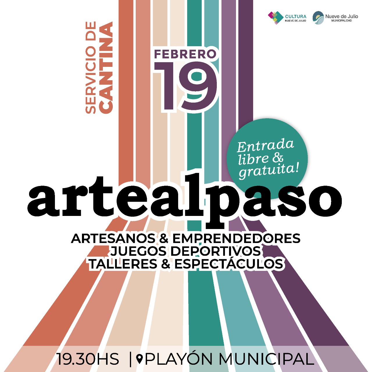 La Dirección de Cultura de la Municipalidad de Nueve de Julio comenzará a desarrollar la edición 2023 de “Arte al paso”, con el primer encuentro a realizarse el domingo 19 del corriente mes de febrero, desde las 19,30 hs., en el Playón Municipal.