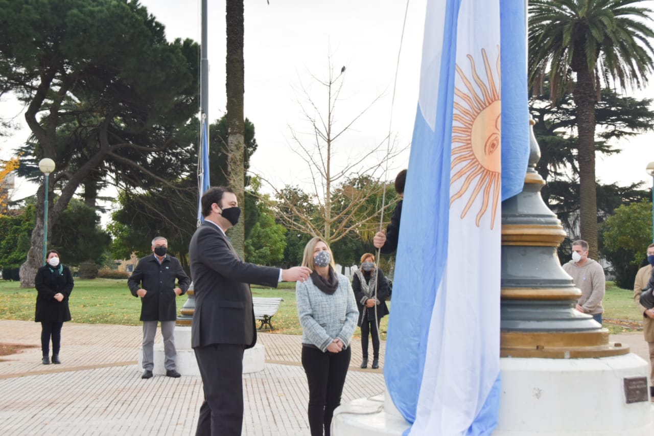 A las 09,00 hs. en Plaza Belgrano, con la presencia del Intendente Municipal, Mariano Barroso, la Presidente del HCD, María José Gentile, abanderados y escoltas de la Policía Comunal, se efectuó el izamiento de Banderas.