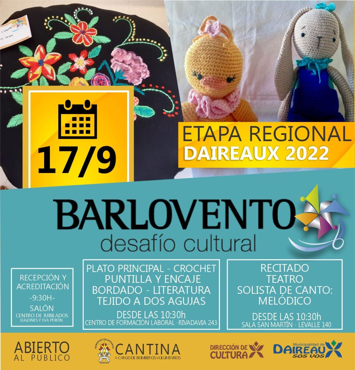 Este próximo sábado 17 de septiembre, adultos mayores de nuestra ciudad, participarán de las finales de la etapa regional de “Barlovento, desafío cultural”, que se desarrollarán en la ciudad de Daireaux, desde las 9,30 hs., completándose el segundo encuentro de un total de tres, de cara a la final a realizarse en octubre en la ciudad de Pehuajó.