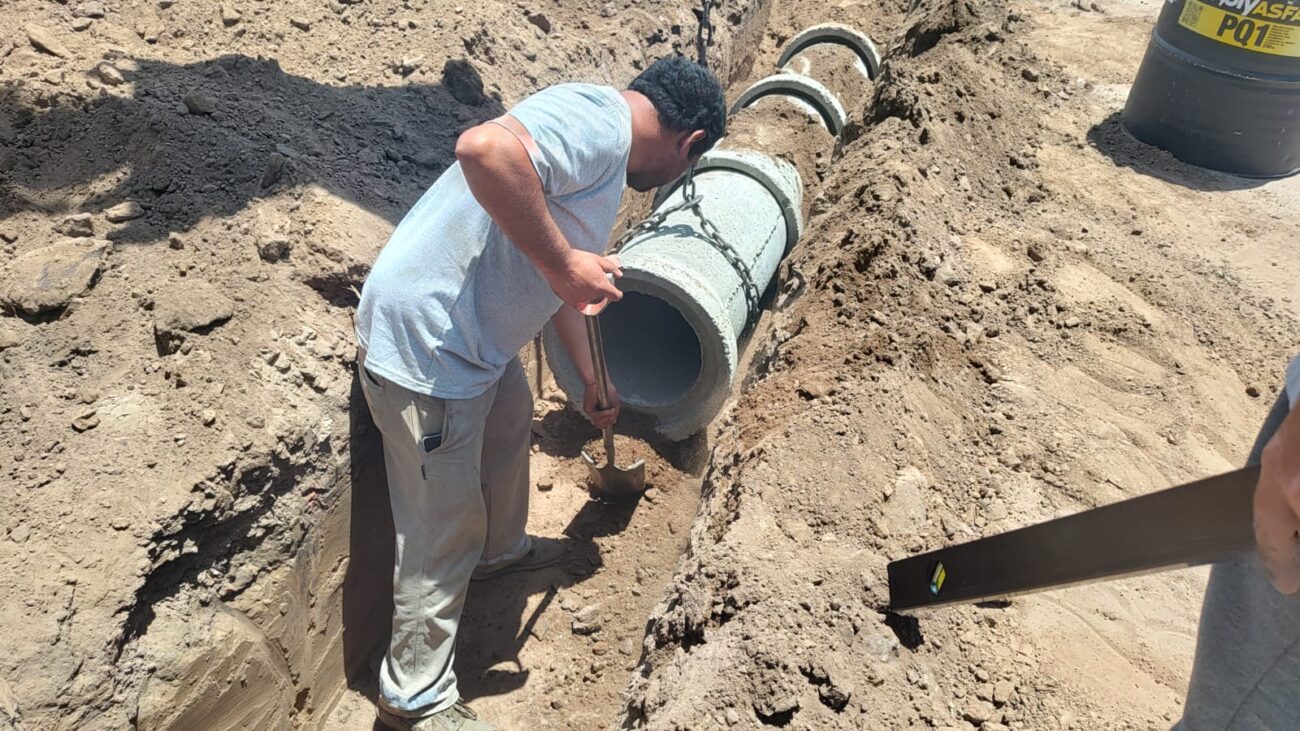 La Municipalidad de Nueve de Julio, a través de la secretaría de Obras y Servicios Públicos, lleva adelante una importante obra de desagües pluviales, sobre Juan B. Justo y Av. Cardenal Pironio.