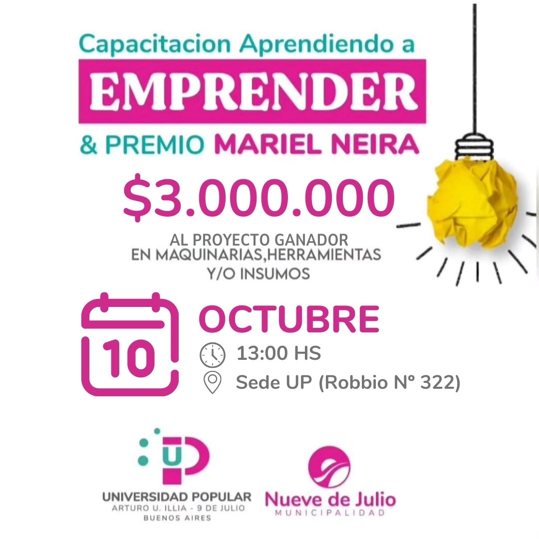 La Municipalidad de Nueve de Julio, a través de la Dirección de Educación y la Universidad Popular (UP), ha arribado a la finalización de una nueva capacitación del ciclo “Aprendiendo a Emprender”, que culmina anualmente con la entrega del Premio “Mariel Neira 2024”.