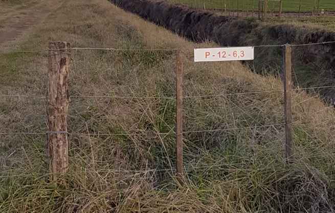 Para la identificación de la misma, se colocará en la tranquera, una chapa blanca con letras rojas refractarias con la nomenclatura.
