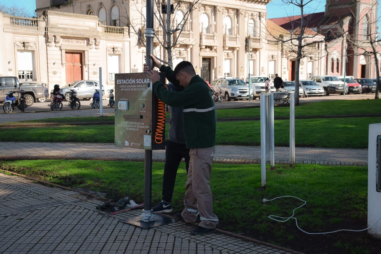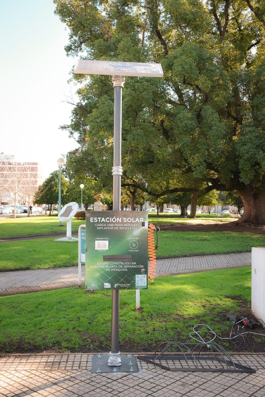 La Municipalidad de Nueve de Julio, a través de la Dirección de Gestión Ambiental, instaló esta mañana Plaza Belgrano la primera estación solar para la carga de dispositivos móviles e inflar bicicletas.