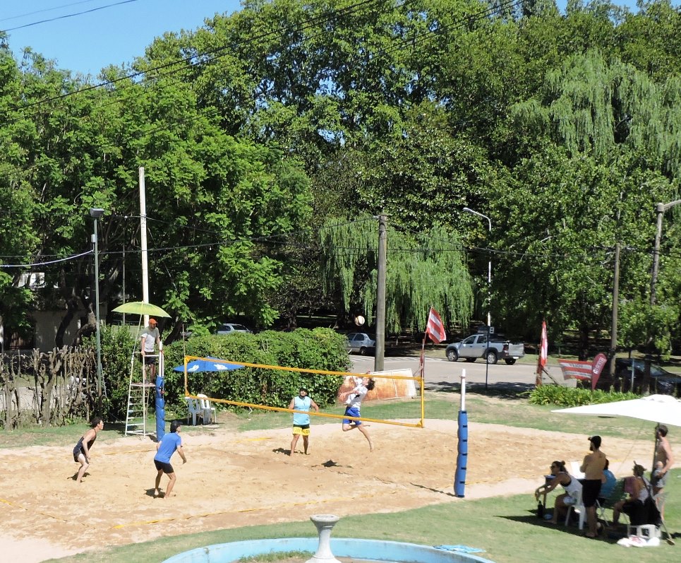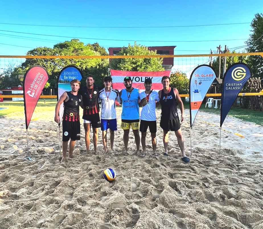 Se disputó el domingo pasado el Torneo de Beach Voley masculino, en la nueva cancha instalada en el Estadio del Club Atlético, habilitada la semana pasada, con el certamen femenino, en ambos casos con participación de ocho equipos, de carácter zonal porque toman parte equipos de ciudades vecinas.