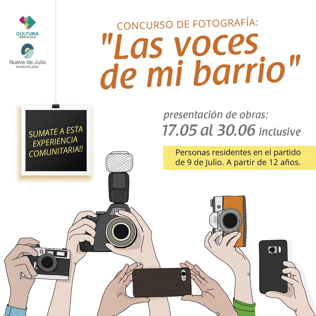 La Municipalidad de Nueve de Julio, a través de la Dirección de Cultura, invita a participar del concurso de fotografía «Las Voces de mi Barrio», una experiencia comunitaria que nos permitirá conocer, a través de la mirada de nuestros vecinos, diferentes aspectos de los barrios de la ciudad y su partido.