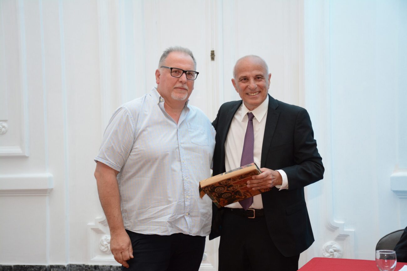 La presentación estuvo acompañada por el Intendente Municipal de Nueve de Julio, Mariano Barroso, quien entregó al autor un ejemplar de la Antología Poética Nuevejuliense, realizada por el municipio, a través de la Dirección de Cultura.