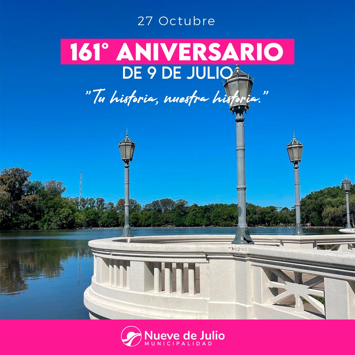 El domingo 27 de octubre, desde las 17 hs. en plaza General Belgrano se celebrará como fuera anunciado, el 161 aniversario de la fundación de nuestra ciudad, con el lema “Tu historia, nuestra historia”.