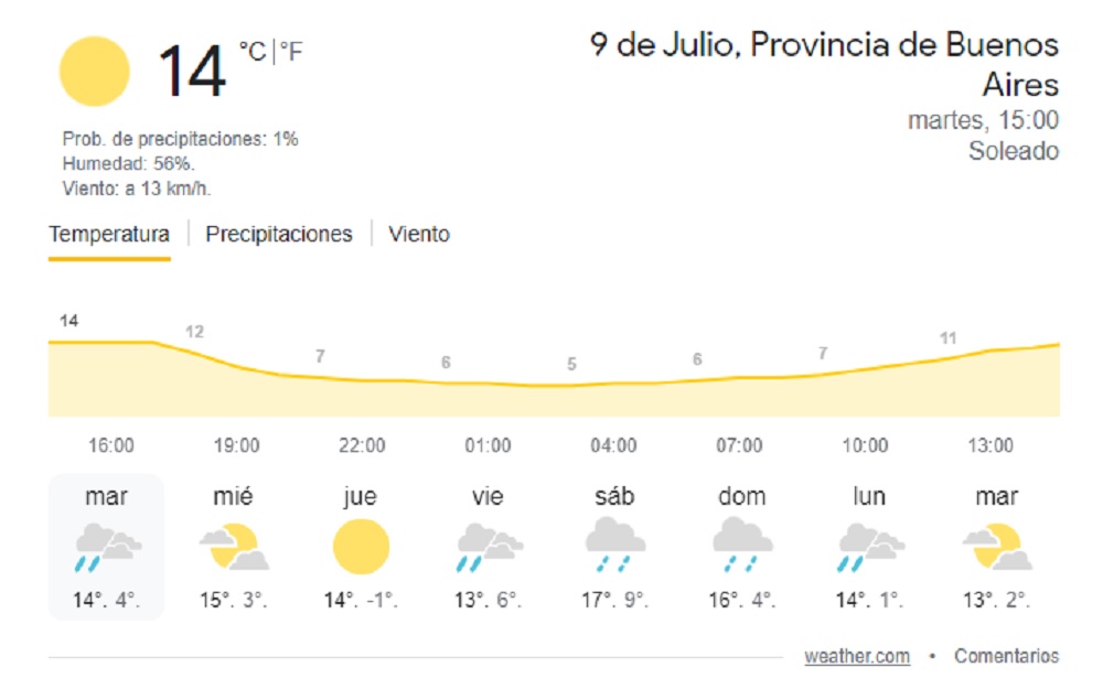GeneralSe viene el agua5 julio 2022 FacebookTwitterPinterestWhatsAppImpresiónTelegram Según el Servicio Meteorológico Nacional, para el noroeste bonaerense se prevé abundante lluvia y temperaturas bajo cero.Últimas noticias Localidadesadmin - 1 abril 2026La Niña defiende su cajerohttps://open.spotify.com/episode/3muXJRkcSaD7XiVPCbpfu6?si=5a068bb2962544df El delegado municipal, Leandro “Nano” Álvarez, señaló que el viernes 27 de marzo último recibió la comunicación del Banco... Agro La Sociedad Rural local reclama por hechos admin - 1 abril 2026 General A la Luna, otra vez admin - 1 abril 2026 Locales Gonzalo Crespo, el nuevo jefe del ANSES local admin - 1 abril 2026 Regionales Trágico accidente en la Ruta 5 a la altura de French admin - 1 abril 2026 Noticias relacionadas A la Luna, otra vez General admin - 1 abril 2026 El impacto de conflicto EEUU-Irán en el agro argentino Agro admin - 1 abril 2026 El peso de alquilar Economia admin - 31 marzo 2026 El caso Noelia y el debate sobre la eutanasia General admin - 29 marzo 2026