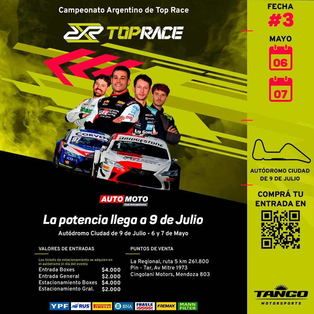 Como informara la categoría Top Race días pasados, en su web y redes oficiales, quedó confirmada la realización de la 3º fecha del Campeonato Argentino, en el Autódromo Ciudad de 9 de Julio, Guillermo «Yoyo» Maldonado.