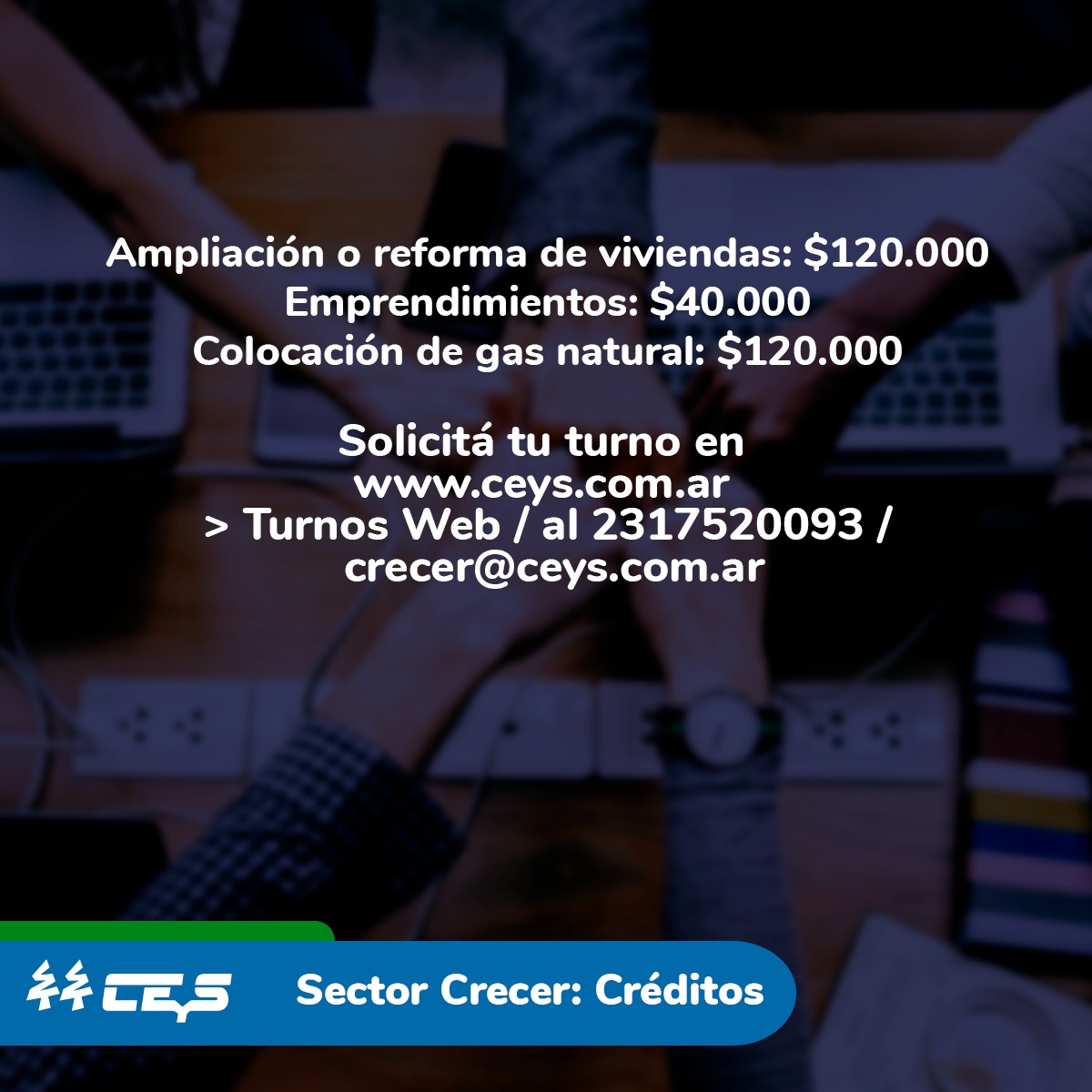 La CEyS cuenta con tres líneas de crédito: ampliación o reformas de viviendas (hasta $ 120.000), emprendimientos (hasta $40.000) y colocación de gas natural (hasta $ 120.000)