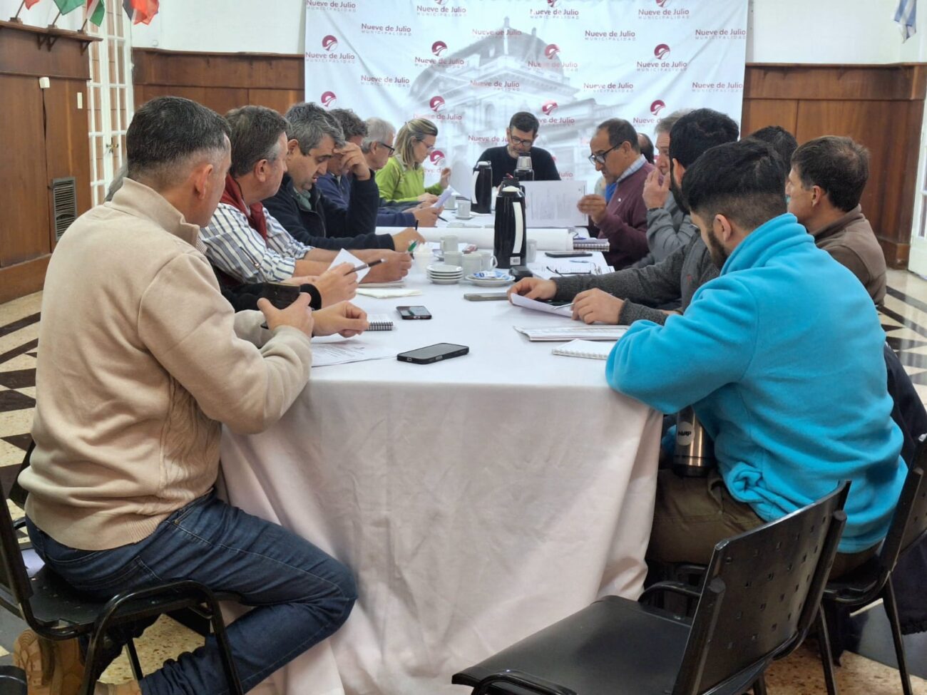 En la mañana de ayer, se llevó a cabo la segunda reunión de la mesa de trabajo conformada por el municipio, representantes de la Sociedad Rural local, Sociedad Rural Argentina, Federación Agraria Argentina, el Círculo de Ingenieros Agrónomos de 9 de Julio, la Autoridad del Agua, la Subsecretaría de Hidráulica de la Provincia, el Ministerio de Desarrollo Agrario, Vialidad de Junín y Vialidad de Chivilcoy.
