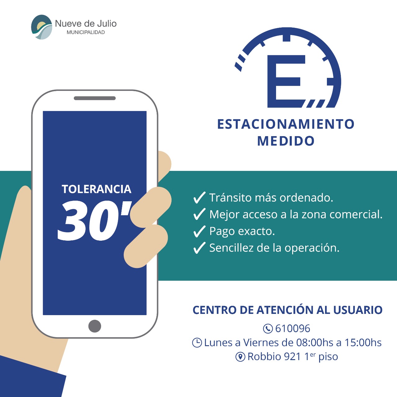 El Sistema de Estacionamiento Medido de la Municipalidad de Nueve de Julio (SEM), recuerda que los frentistas incluidos dentro del perímetro comprendido por las calles Mendoza, entre Salta y Cavallari; Santa Fe, entre Salta y Cavallari; Cavallari, entre Santa Fe y Mendoza y Salta entre Santa Fe y Mendoza) pueden acercarse a la oficina de Estacionamiento Medido, ubicada en Robbio 921, primer piso, a solicitar la exención al pago, prevista por la Ordenanza regulatoria.