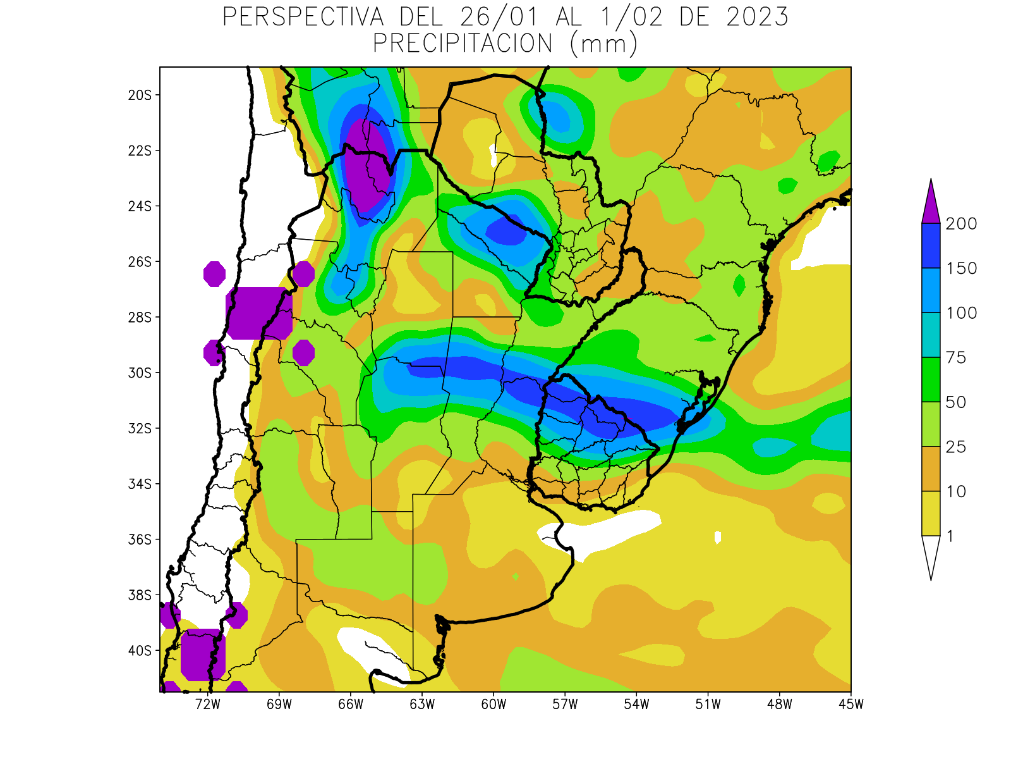 Al inicio de la perspectiva agroclimática de la semana del 26 de enero al 2 de febrero continuaron soplando los vientos del trópico, que hicieron su entrada en los días precedentes, produciendo un ascenso térmico, con registros sobre lo normal en el norte y el centro-oeste del área agrícola, pero sin superar los valores normales en el sur y las zonas aledañas al Litoral Atlántico.