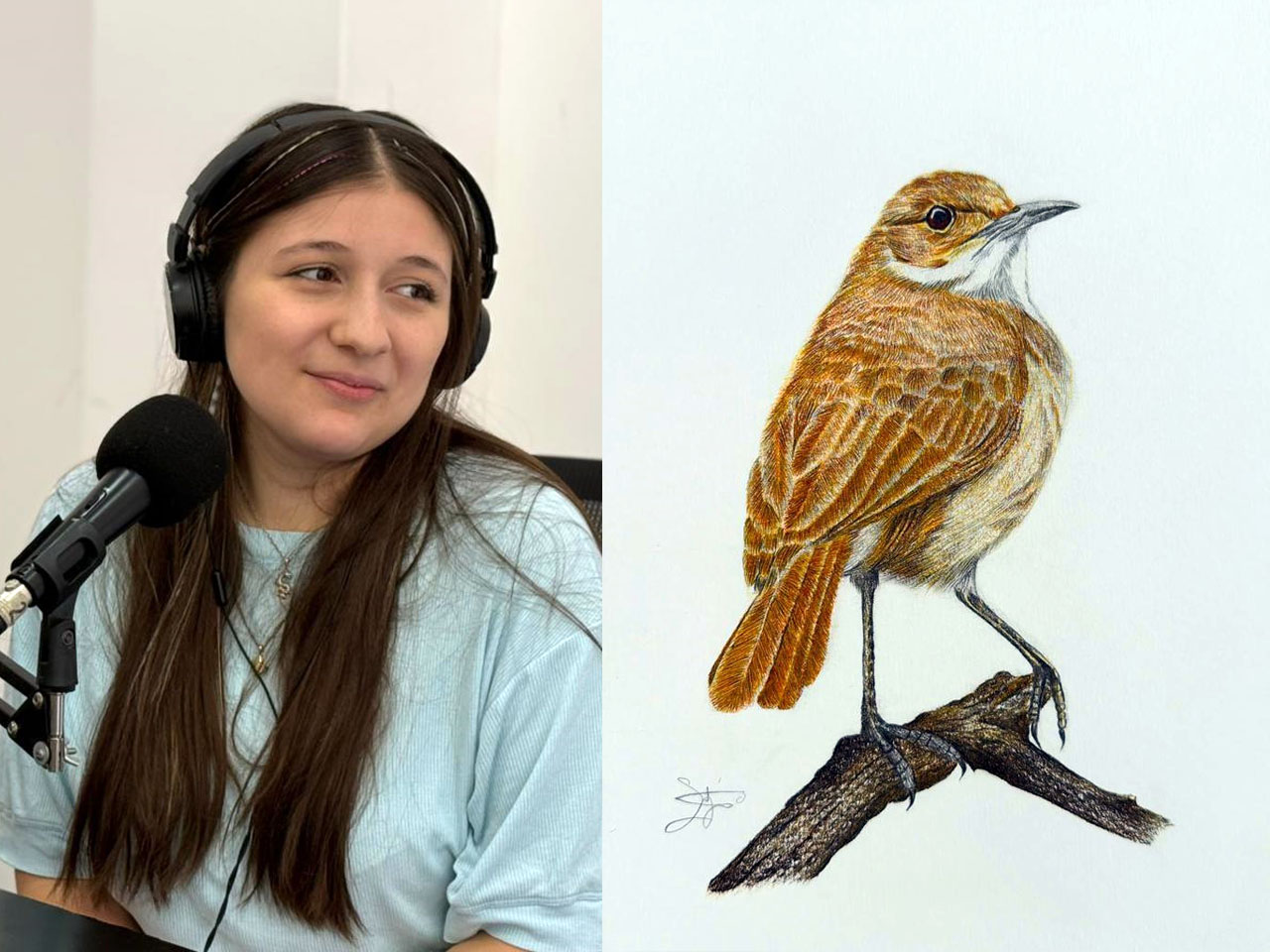 Sofia estuvo en “Un Plan Perfecto” (Supernova 97.9) contando sobre la muestra, sus comienzos con el dibujo, algo que ella misma explica que lo hace “desde chica”, y el por qué encontrar la inspiración en el mundo animal. El nivel de detalle es enorme, no solo en el trazo y en los colores, sino en la meticulosidad y realismo casi extremo de plumajes y pelaje en varias de sus obras. Las aves son su debilidad aunque también realiza retratos de mascotas, este mismo tipo de trabajo artístico a pedido de aquella persona que quiera inmortalizar a su perro o gato. Varios ya fueron “retratados” por el talentoso trazo de Sofia que ve en los peces un desafío que va a encarar prontamente. A través de su cuenta de Instagram @art_bysofii se la puede contactar, además de apreciar varias de las obras de su catálogo.