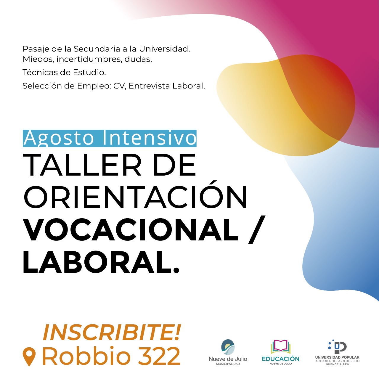 A través de la Dirección de Educación y la Universidad Popular de la Municipalidad de Nueve de Julio, se habrá de dictar, de manera intensiva y durante el mes de agosto, un interesante taller de orientación vocacional y laboral.